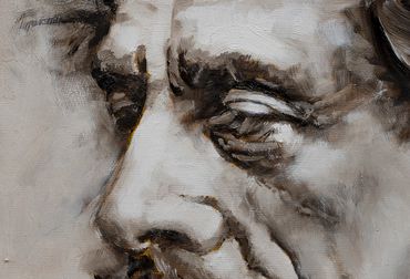 These are paintings of writers and poets, explorers and musicians, those who stay current in spite of passing time. The paintings were done using old black and white photographs and were kept that way. These are sketches, impressions that were inspired by the words these people say and deeds they did.